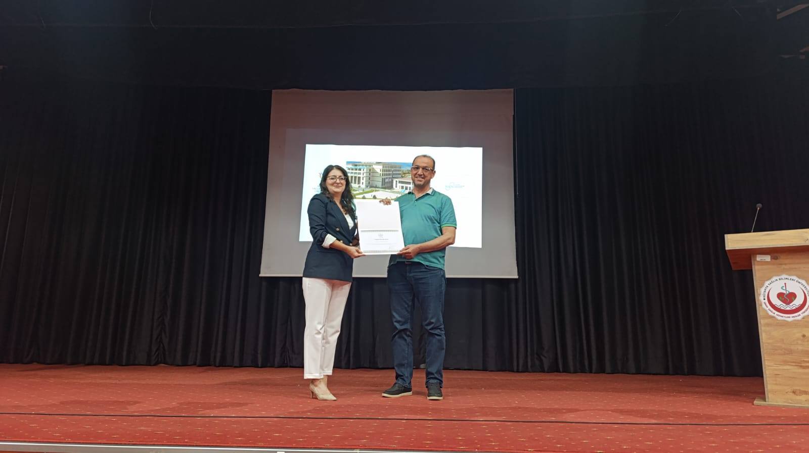 Sn. YILMAZ a Meslek Yüksekokul Müdürü Dr. Öğr. Üyesi Özge SAKARYA ÇINKI tarafından "Teşekkür Belgesi" takdim edildi.